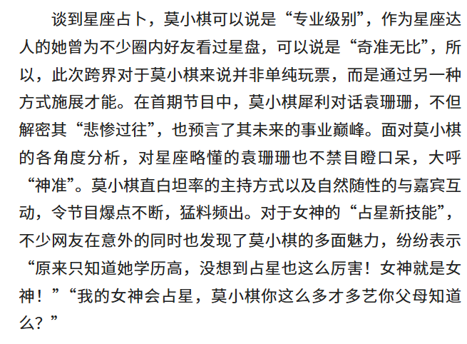 你想学习莫小棋的星座读心术么?热爱看星座分析和占卜的宝子们可千万不要错过了!整理不易,大家一定要好好珍惜。
